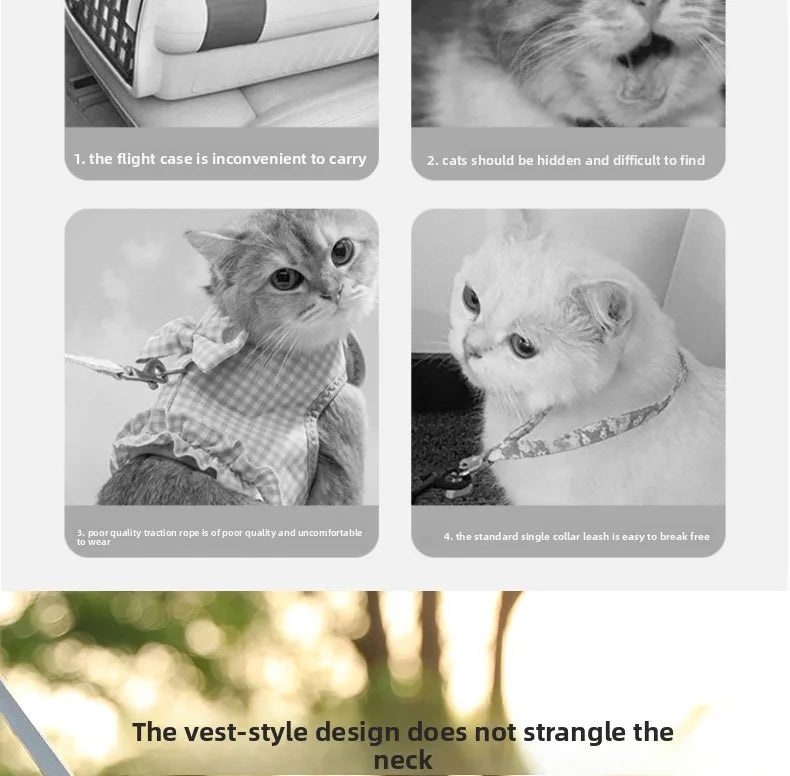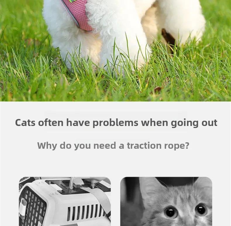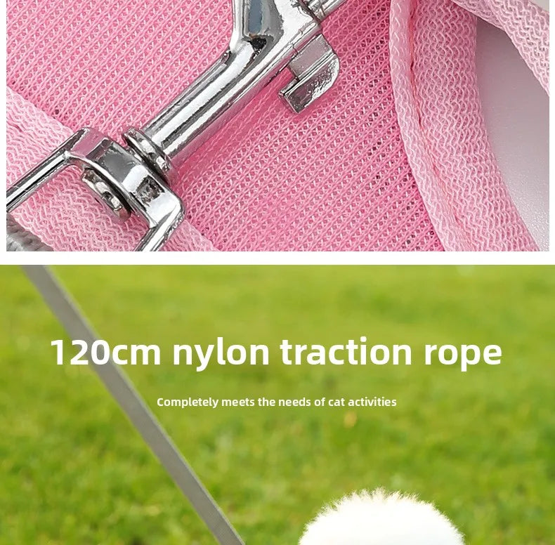 2.Soft Mesh Cat Vest Harness and Nylon Leash Set for Walking Escape Proof No Pull & No Choke Design.The harness will make your kitty safe and comfortable. It is best for walking, running,playing or hiking. This safety harness leash set allows you to walk your pet.