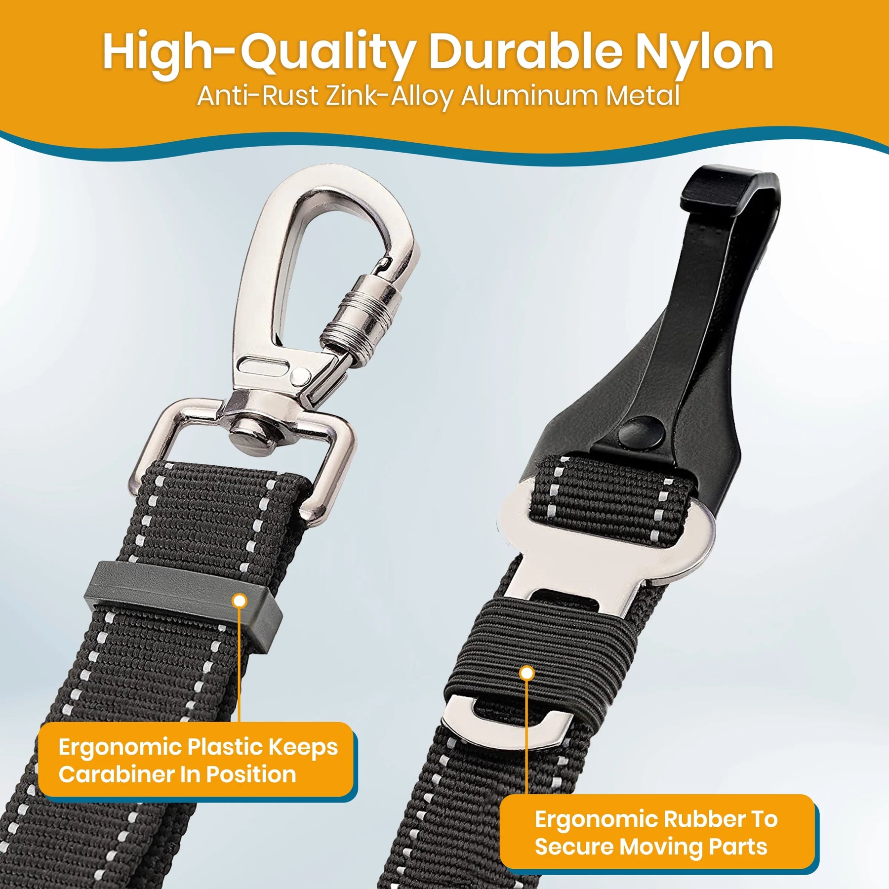 - ENHANCED SAFETY – Our elastic dog car safety belt absorbs impact during sudden stops, and the lockable carabiner enhances overall protection, making it a reliable choice in pet seatbelt options for safer road travel.